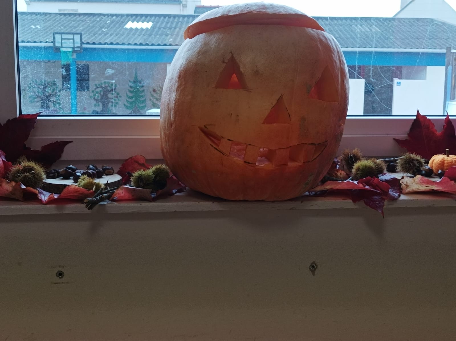 Pendant les TAPS, Valérie et les enfants ont préparé une jolie citrouille pour Halloween. Ils ont pris beaucoup de plaisir à la vider, la décorer et lui donner un air effrayant ! ![]()