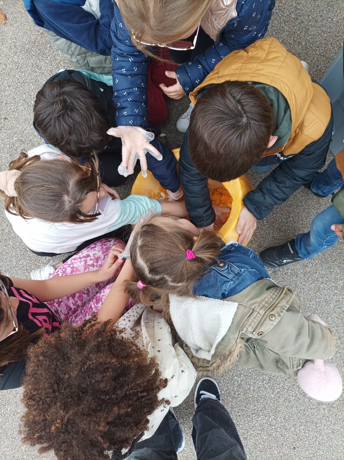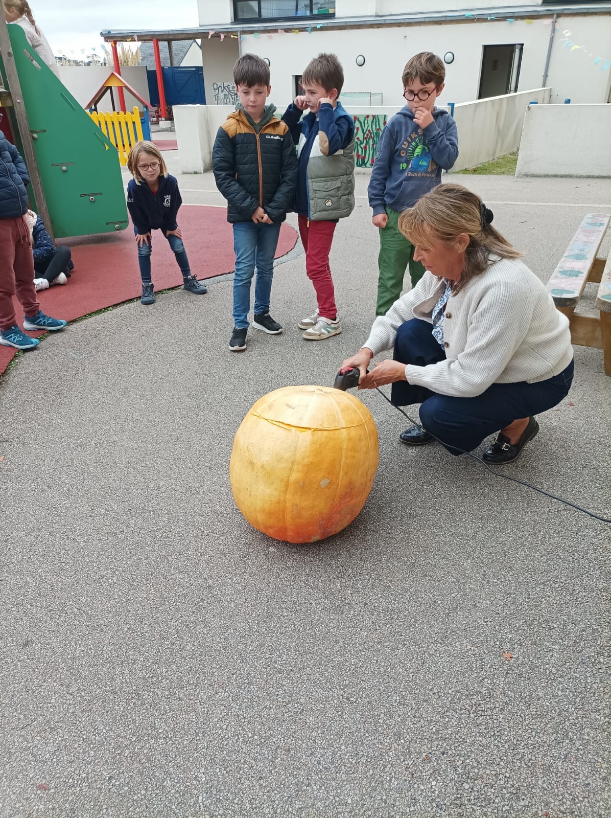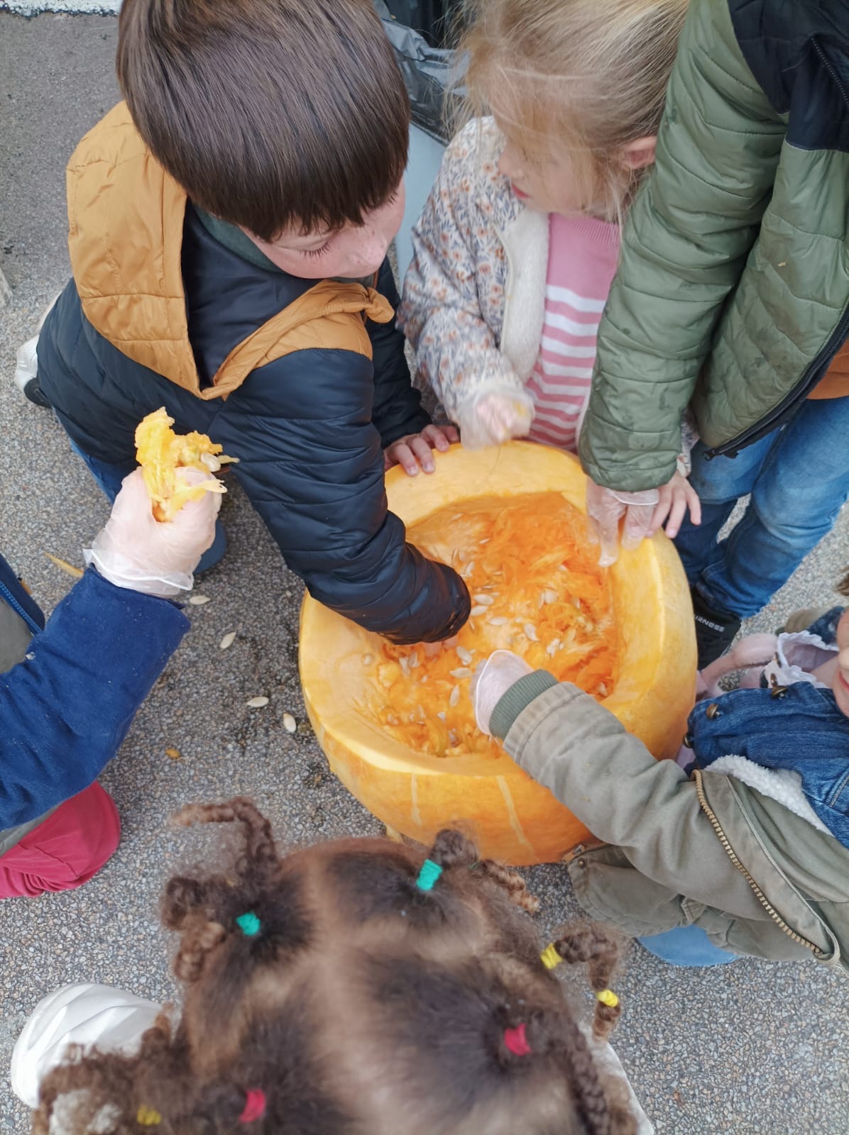 Pendant les TAPS, Valérie et les enfants ont préparé une jolie citrouille pour Halloween. Ils ont pris beaucoup de plaisir à la vider, la décorer et lui donner un air effrayant ! ![]()