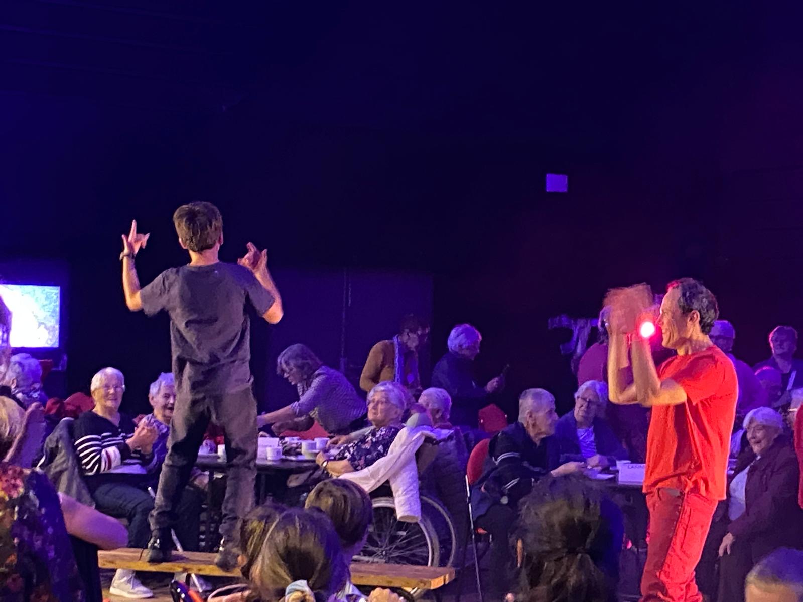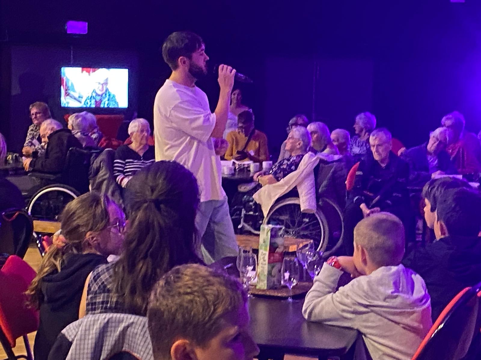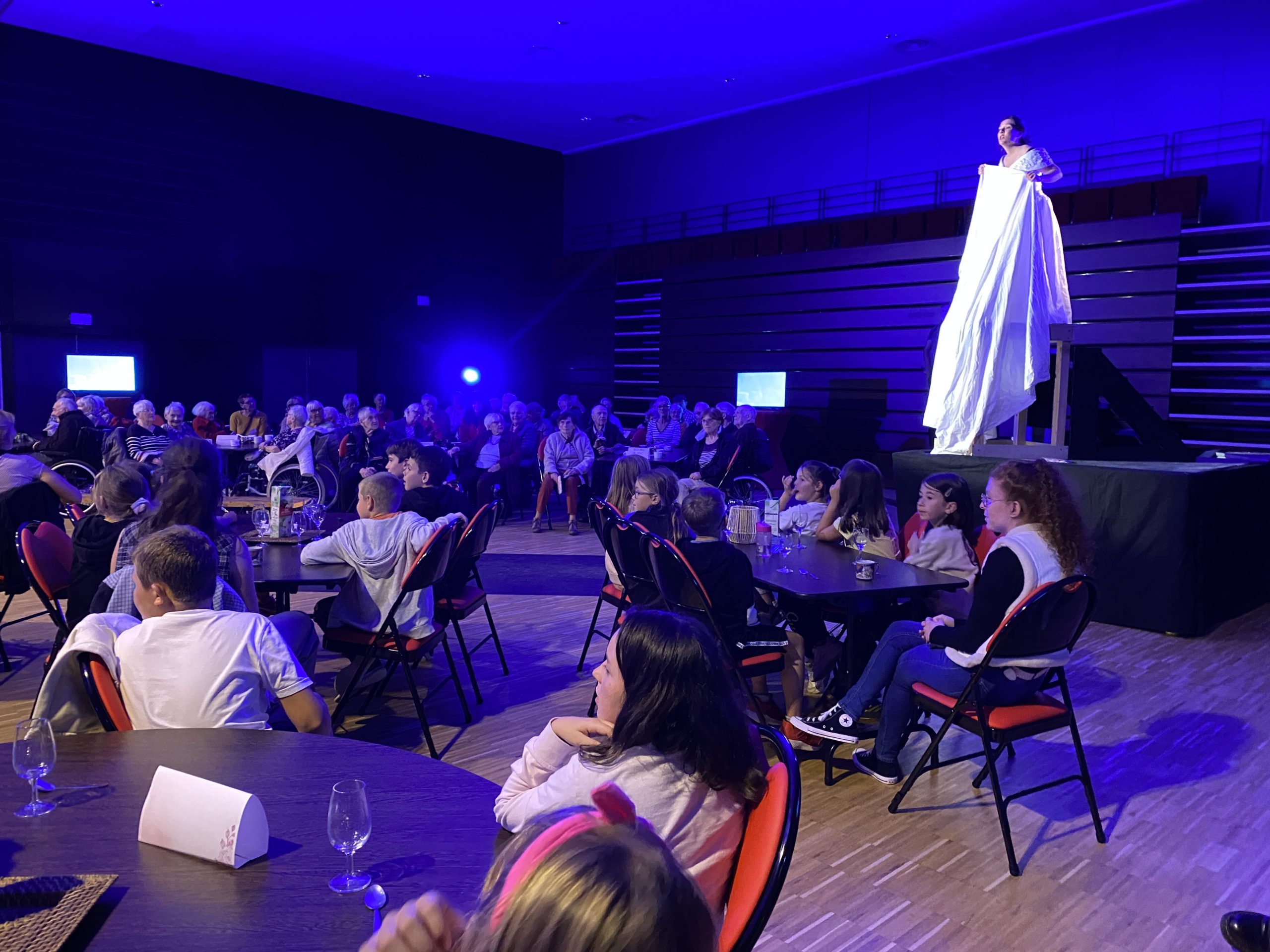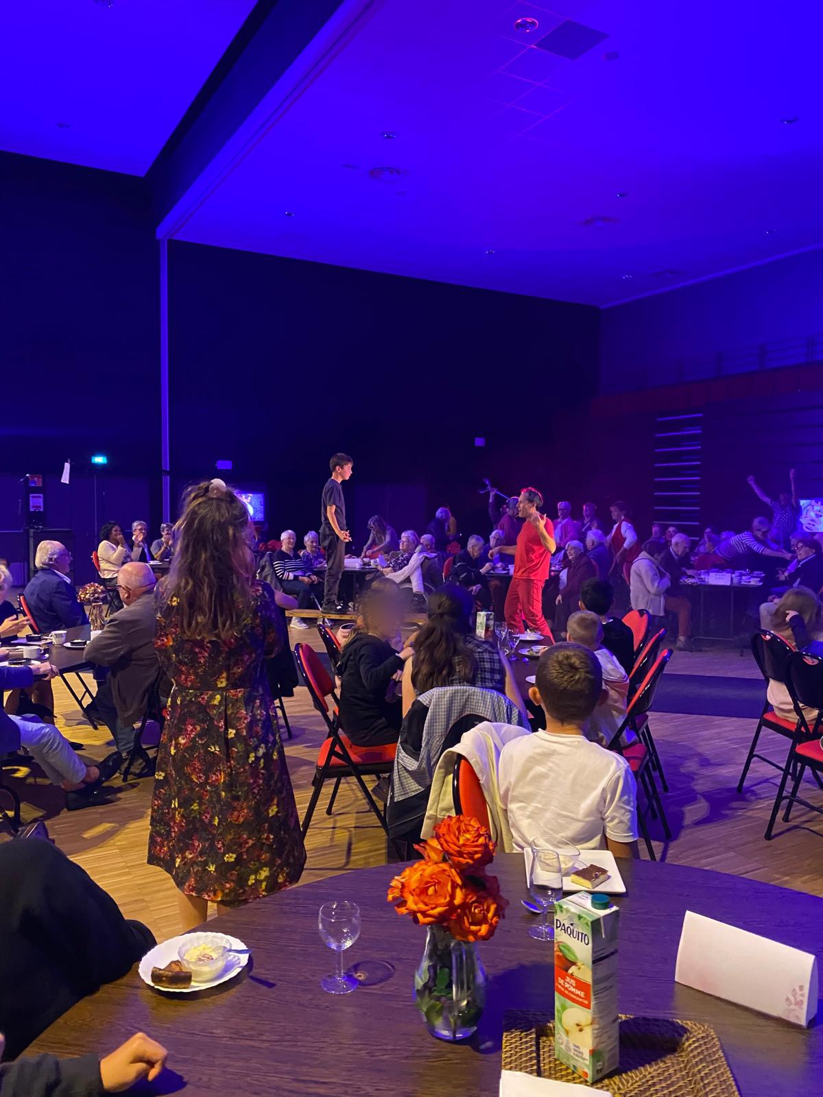 Les CM1/CM2 ont participé à “La guinguette du siècle” à l’Armorica, un spectacle intergénérationnel imaginé par le Théâtre du Grain. Construit à partir de rencontres entre artistes, personnes âgées et enfants, il s’est terminé par un goûter et un thé dansant. Une belle expérience pour nos élèves !