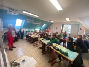 Jeudi, une intervention des Restos du Cœur de Lannilis a eu lieu dans toutes les classes de l’école.