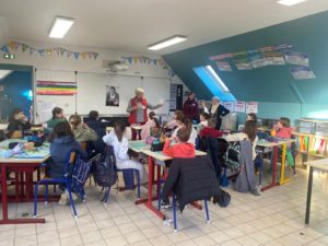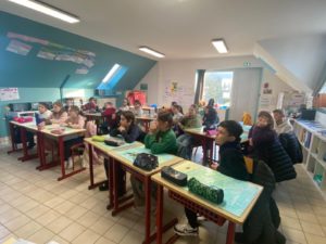 Jeudi, une intervention des Restos du Cœur de Lannilis a eu lieu dans toutes les classes de l’école.