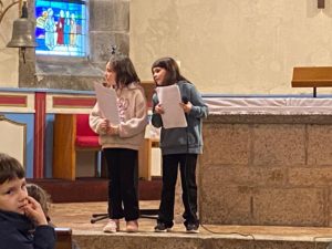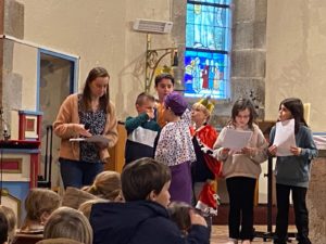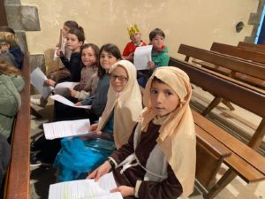 Célébration de Noël par Sophiane Le Goff | Jan 5, 2026 | CE1-CE2, CM1-CM2, GS-CP, La vie des classes, TPS-PS-MS | Jeudi après-midi, les enfants inscrits à la catéchèse ont pris beaucoup de plaisir à jouer la crèche vivante devant leurs camarades lors de la célébration de Noël. Un grand bravo à eux pour leur investissement et leur enthousiasme !