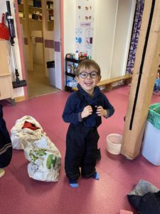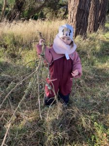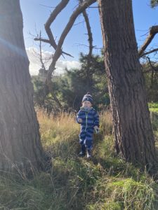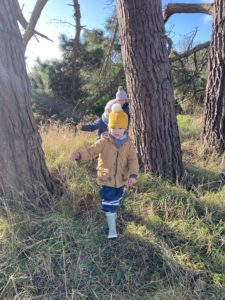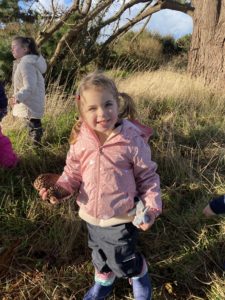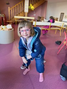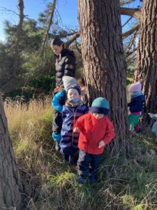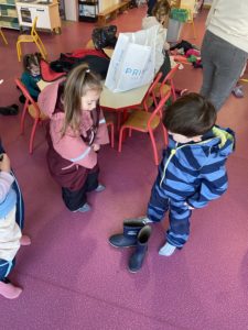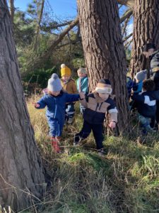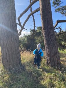 Mardi matin, c’était au tour des petits de découvrir l’école du dehors. Nous avons découvert notre classe de dehors. Pour rentrer à l’intérieur, nous passions par une porte symbolique formée par deux arbres.