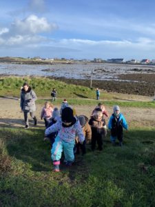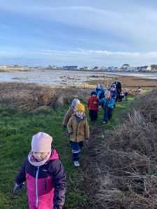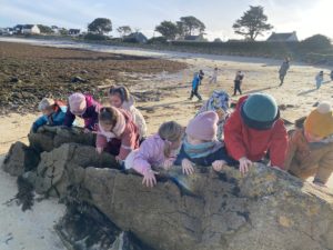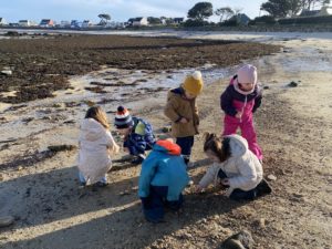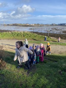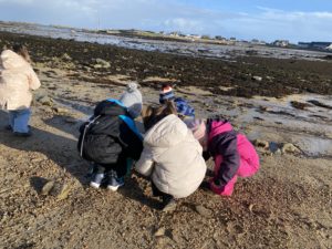 Nous avons ensuite travaillé sur les nombres, avant de partir en récréation sur la plage. Puis, nous avons repris le chemin du retour vers l’école.