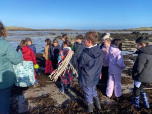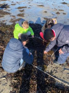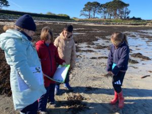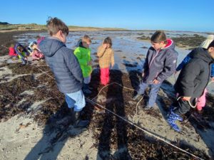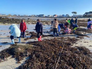 Dans le cadre de leur aire marine éducative, les élèves de CM ont participé au protocole ALAMER, dont l’objectif est d’étudier les algues présentes dans la laisse de mer.