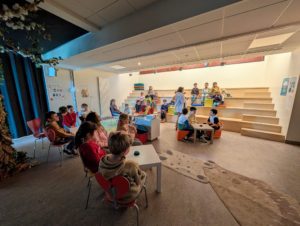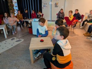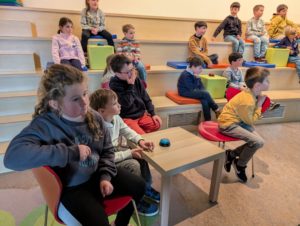 La semaine dernière, les élèves de CE1-CE2 se sont rendus à la médiathèque pour une sortie très attendue. À leur arrivée, une belle surprise les attendait : ils ont eu l’impression d’entrer sur un véritable plateau de télévision !